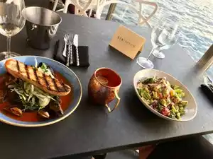 Great location overlooking the water. Excellent service and clearly a very popular place to come. We planned for a drink but stayed for dinner. The cocktail list was innovative but we went old school for an off-the-list Aviation. It was perfect. Food was extremely good and yes we will be back!