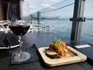 Unbeatable views and unbeatable food. We managed to secure a table on the terrace - literally beside the water - and on our beautiful sunny evening, it really was perfection. The food was absolutely outstanding; two of us opted for the filet mignon and one the scallops - we were all blown away - just superb food! The service was excellent too, attentive without being fussy. I'd rate the whole experience at 100%.