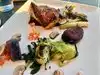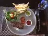 The food was very good, not special, but very good. The problem was that the "team" was not working well together. We were served by at least 5 people, who evidently did not talk with each other about our allergies (plenty in this family). For example, our GF salad came with bread on top. I asked if it was gluten-free, and this particular person who put it on the table said, "Yes, it's a GF salad, but I'll go ask the chef to make sure." We waited patiently until he came back and took it away, "sorry." That's sort of how things went. Never knowing who was "taking care of us this evening" led to us all laughing when some man stopped by when we were all done, just to ask, "is everything was all right?"--we are still figuring out his role on the team. The next day we met the staff on strike outside, their absence perhaps explaining the oddly discombobulated approach to service inside. (We learned that male private security workers observe female staff in their dressing room--ugh. So we won't be back.)