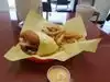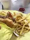 The food was great! The portions were huge (tons of fries). It just so happened right before we ordered there was a big phone order. Unfortunately that was enough to derail the lunch rush. It was a long wait to get our food but worth it.
