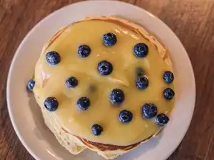 He loves to make his ow. Pancakes and add his own toppings. The buttermilk batter was perfect for him. We also tried the seasonal batter lavender orange and it was wonderful. Had the veggie hash which was also fantastic.