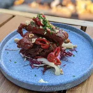 Sloane's has been on my list for a while, so finally got the chance to tick this one off. Made a reservation through OpenTable and we parked in the Trammell Crow Garage nearby - the restaurant validates parking. It was a Tuesday afternoon so pretty quiet and we chose to sit outside near the firepit, the setting was really nice. It was happy hour (M-F 2-6PM) and we ordered from the HH menu to begin with. I came here for those Spicy Pork Ribs so that was one of the first items I got, along with the Sour Cream & Onion Fries, Prime Beef Burger (Lunch Menu) and Triple Chocolate Budino (Dessert) and some cocktails. Sour Cream & Onion Fries with Garlic Aioli ($4) - Fries were good. Interesting seasoning with the sour cream being powdered. Spicy Fried Pork Ribs ($10) - I was really looking forward to these but they came out so crispy - it was inedible. Literally so fried that I couldn't even cut the meat off it. I told our server, and appreciated that she took it off our bill. Prime Beef Burger ($14.50) - The burger was decent and came with a side of fries. Triple Chocolate Budino ($9) - Very sweet, maybe it was the caramel because the crumble part with a bit of hazelnut was good. Drinks - From Me to Yuzu ($10), HH Old Fashioned ($7) & Bees Knees ($12) - The From Me to Yuzu was from the 12 days of Christmas Menu, Gin with Yuzu, I thought might be a good mix but was a bit more medicinal with the other additions. Bees Knees was better - Gin, Lemon and Honey. But nothing can beat an Old Fashioned and they were pretty good so stuck with that. Quantity 4/5 - Good size portions. Ambience 4/5 - Ambience is really nice, the heated enclosed patio is great and gives a good setting. Service 4/5 - Service was good, some suggestions weren't the best but overall attentive. Taste - 3/5 - Obviously can't really comment on the ribs, the burger was ok and the fries ok again. Really wanted to enjoy this place more but the food wasn't amazing - and I was seriously hungry, so obviously had to get some In-N-Out on the way back. The drinks were good - the Old Fashioneds in particular. Overall nice setting for after-work drinks or more formal casual/date night drinks. But I didn't have the best experience with the food, which was kind of the whole point of coming here. Might think twice before heading here for food. Drinks and conversation maybe.
