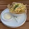 Lovely outdoor seating area, oh, and plenty of seating inside as well. The server Desiree P was lovely, friendly and helpful. We went for our lunch and I has a 6oz prime “Filet Butchers Block” steak. It was cooked to perfection, warm the whole way through and rare on the inside. It was very very tasty. There were chips and a wee bit of salad dressing. My wife had soup of the day $8.00 which would remind me of the sort that cowboys would get in the films!! “Cowboy soup” not to my taste, but everyone is different. She also had tomato Focaccia ( bread) $8.00 and it was absolutely delicious. The steak might have been a little on the expensive side $39.00 but, worth it because of the way it was cooked and the tast.