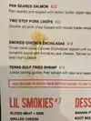 Enjoyed happy hour drinks and smoked offerings: chicken quesadilla, beef taco and the pulled pork. All had excellent smoke flavor. Our waiter, George, was attentive to our needs!