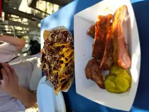 Extremely hearty aperitize, you can feed on two tops, ribs excellent, smoked as it should, quick service, a little expensive. To do from his Inn, being on the river. No parking.