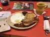 Breakfast is the most important meal of the day! The menu selection is awesome! There is seating outside where dogs are welcome to visit too. Food was delicious and hot! Service was great and the staff seemed to be happy. Unique experience would definitely come back.