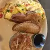 Wow, what a selection of sweet foods for breakfast of brunch. I had the egg white omelet and it was the only item without a sauce or sugary content. The offerings are large, the wait staff very attentive, and the food was delicious. With tip we spent $72 for 4 adults and a child. Worth going to, show up early or you have to wait.
