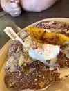 What a great way to end our Austin trip. Had the Peanut Butter Cup pancakes which were decadently awesome. The Dirty Drunken Chai was a nice change-up from a mimosa. Server was super nice and fun, place had a unique, energetic vibe. Expect a wait on weekend, but worth it.