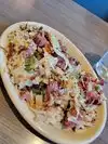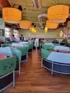 Soooooo loud inside. The music is way too loud, so everyone is talking at the top of their voices. Then kids scream even louder to be heard. Also took more than 30 min to get our order, when the person next to us arrived after us, and had finished eating before we received our food.