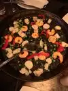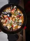 When eating paella, it should inspire your senses...but sadly this was not the case... Smell...when bringing out the paella, there should be an aroma of saffron....no fragrance at all Sight...shrimp were the frozen baby shrimp and not the whole shrimp ; usually seafood covers the paella but as you can see its barely provided Taste...rice was too wet and worse part was there is no saffron taste at all Overall, disappointing given what makes paella special is the saffron (thus the price) and when you can't taste/smell the saffron nor is the seafood presentation in anyway special ; makes you long for the days of real paella in Spain...or in other Paella restaurants in the city that actually uses saffron in the dish...