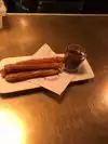 Saw this place next to our dinner spot. Saved room for some churros with Nutella or hazelnut. I reality wanted to try their gazpacho and some sautéed mushrooms too. Most known for their paella, it seems. They took the gazpacho off the menu, must be because it’s cold outside and nearing winter. No seating for walk-up’s except for the high tops, the long counter along the bar counts as part of the high top, also the bar is available as well. It’s good we are here early. Most folks are better off with reservations for Saturday night dinner. We settled and decided to order the tortilla, churros with Nutella or hazelnut sauce. $26.13. The tortilla was super disappointing, mushy and not good. Didn’t taste freshly made, but reheated and nuked in the oven, since it was scalding hot. Nothing like what I have eaten when living and or visiting Spain. The churros was crunchy, chewy and nicely seasoned with sugar. Went well with the Nutella. I could eat more.