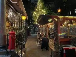 Great place for a drink! The patio on the street was nicely decorated with flowers and string lights. The service was quick and we enjoyed our time together with friends. We didn’t eat there, just had wine and a cheese board.