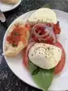 Stopped here for breakfast after touring the farmers market. We were the only customers in the restaurant. The staff is friendly and the prices are average for the food. My wife had the scrambled eggs with Italian sausage. The sausage was better than most sausages that I have tried. I ordered the smoked salmon crostini and a side of the Italian sausage. Unfortunately the waiter forgot the sausage. The dish was more of a deconstructed crostini. The Bloody Mary was good and came with cocktail onions and a cherry tomato on a cocktail tooth pick.