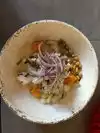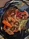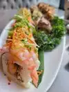The salmon was delicious the fried rice was excellent but the rolls were like defrosted fried. The miso soup was pretty good. Seating wasn’t up to par.