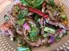 This is not your usual Thai fare with red, green, panang, massaman curries. But precisely why this place is such a treat. My favorite dishes on the menu are House special grilled marinated pork/beef. I also love the Original styled Thai spicy papaya salad. My favorite main dish is Pad Ki Mao Moo. All in all highly recommended place if you love thai flavors and want to try something new!
