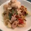 Ordered noodle dish with calamari and shrimp, excellent. Seafood perfectly cooked, noodles melted in my mouth. Coconut rice good foil for spicy papaya salad. Very tasty. The dissapointment was the recommended fried chicken thighs. Ok if you like greasy chicken skin.