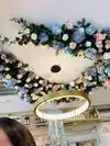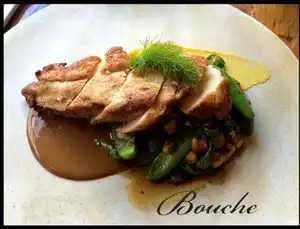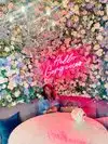 Number of flowers hanging from the ceiling and walls--over the top. Annoying scent from the candles on the tables, which we asked the wait staff to extinguish--overbearing. We found the restaurant too noisy for us to have a conversation. The food was plated beautifully but, again, over the top colorfully. Food was tasty enough but nothing special. I ordered the cauliflower veggie burger with greens on the side.