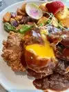 So beautiful when you walk in. The neighborhood is sketchy so it was so nice to walk into a beautiful restaurant. Delicious. I got the lemon ricotta pancakes which were recommended in a blog, Girl & a Passport. My sister got the son and Garden omelette platter is so delicious too. Nice staff, huge tv screens on the wall & beautiful Asian decor.