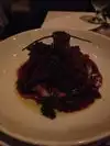 We dined on a Sunday night to celebrate the birthdays of our wives. While waiting for our friends to arrive the hostess introduced us to Raúl our server and Mark the piano player. We were offered to be seated but chose to wait as our friends were only a few minutes out. Once seated they brought around a large bread tray with about 5 different bread types to choose from, along with garlic and oil on the table....outstanding. Two of us got the risotto mixed in the large cheese bowl. It was good but not great. It was fun to watch it prepared table-side. Some of us had beet salads which were reported as very good. I had the lobster bisque which was very nice with chunks of lobster. I had the short ribs special which was good +, I probably should have went with my first choice of the lasagna. My wife had a pasta dish which she really liked. One friend had the tasting menu which she enjoyed and found very filling. Raúl our server did an outstanding job and took care of us with perfection. He was always available but not hovering. We had a couple of nice wine....Stags Leap Petite Sirah...see photo. The ambiance was wonderful with holiday lights and Mark the piano player. While normally not a fan of live music in restaurants, Mark did an outstanding job of playing soft seasonal music that didn’t interfere with our conversations. I will definitely return here. This place is perfect for that nice dinner out or special occasions. They also have a wine room for small groups....which was in use the night of our visit.