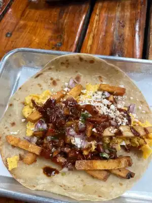 Decent food, coffee and atmosphere. The taco seemed to contain French fries for potatoes. Expect to pay typical Austin restaurant prices. Definitely want to try the Happy Hour menu.