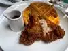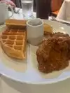 Went for lunch. First experience with chicken and waffles for a California guy. Waffle was one of the best I’ve ever had. Chicken was fried to perfection. Fried Gerry tomatoes (also a first) and chicken livers were excellent. Served with a starter of biscuits and cornbread muffins. This place can’t be beat. Better be hungry here.