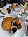 The chicken and waffles <<<< by far the best I’ve ever had 🤤 love this place!!! The mango mimosa was refreshing and fresh! The peach jam was so good too. Awesome service, awesome atmosphere and awesome food.