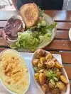 At lunch time on a weekday my guest and I were greeted and seated immediately. The restaurant itself is beautiful and classy yet full of character. Our server was attentive and friendly as well as the manager that stopped by to say hi. I had the smokey beef brisket sandwich which was very good. The chips it came with were great but their fries were fantastic. The mayo-bbq dipping sauce was delicious and the biscuits and cornbread was appreciated. I will certainly be back!