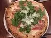 The pizza is really tasty. We went there in Saturday afternoon without reservation. We waited about 40 min, but was worth it. The service was very good. We ordered mussels for appetizers which was delicious, and 2 pizzas with prosciutto for entry. One was white with fresh prosciutto, aragula and cheese, and second one was red with steam prosciutto, mushroom, and artichokes. Crust was amazing, thin, lite and tasty. Delicious food, fresh ingredients, and good service. I will be back.