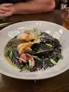 This place has been on our list for a bit. We finally had a night to try it. Made reservations for the same day at 6:30 pm. We were seated promptly, and our waiter came quickly. We ordered a couple of their cocktails and heard about their night special. We got two starters and two entrees. I would pass on the beef tartare next time. It wasn't for me. We got the Space Balls, and I enjoyed the Tuna but not the salmon. The Inked Seafood Risto is my new favorite entree in the city. The aged Beef entree was good but didn't blow me away like the Inked Seafood Risto. The robots are cute and something different. The space is pretty. I assume it is very loud when the place is full. It's always nice to have a parking lot in Austin.
