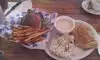 Brisket fries were delicious and a portion large enough to share with the table. There was live music on stage that was good - but had some sound problems. Sandwiches were large and delicious.