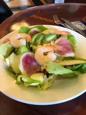 I’m used to very high prices at Hilton restaurants but this one hit a new level. I was there for lunch and stood by the “Wait to be seated” sign for quite awhile till I realized that no one was seating anyone. One employee was handling everything- the coffee shop, taking orders for the restaurant, and bringing them to the table. I considered just getting pre-made stuff to take back to my room but an ordinary sandwich was $12 and a bottle of Pellegrino was $4.25. My first choice, an appetizer with pita and hummus, wasn’t available, so I ordered a Market Salad with an “enhancement” of shrimp, which cost $11 extra. That got me THREE shrimp. Really? OK, the salad was good but not $30 good. The meal credit I get as a Diamond took some of the sting out of it but I was glad I'd skipped breakfast.