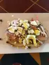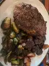 We ordered Ribeye and baked potato to share. We were served a basket of bread while we waited. The bread was very good. The stake was served cooked to perfection.The potato was great to.Service was fantastic.