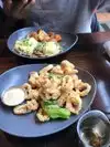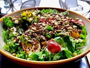 We were 3 women having a weekend in Philadelphia, staying at the Sofitel across the road, and saw this restaurant so had some lunch there. We all ordered different things and all of us found our food to be delicious and beautifully presented. It was a bit quiet as not many people were in there, but the atmosphere was still nice, with most of the tables right beside the windows. I have included photos of my calamari appetizer and beet salad. They make healthy smoothies too, which I also enjoyed one of. Nice variety of food and very healthy considering it's classified as American cuisine. Pleasantly surprised.