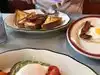 We ate here twice, the breakfast is very good. I had eggs Benedict which was cooked perfectly and French toast with loads of syrup provided. Eggs were well done as was the bacon. Serving team though are let’s just say not a happy cheery bunch.