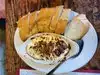 This restaurant comes highly recommended by the locals as the go-to place for the best pizza in Houston. Such recommendations should never be ignored. Even in that strange period between Christmas and New Year, this place is busy. The restaurant itself is very informal and somewhat rustic, and is housed in the original building that was opened by two guys from Chicago in 1976. It is spread over two levels, plus outdoor seating, and there is always a proliferation of customers waiting for their to-go orders. Parking can be an issue, as the parking lot is limited, and traffic around the building is chaotic - a testament to the popularity of the place. Now to the menu. The pizzas are available in both New York (hand tossed) Style and Chicago (Deep Dish) Style, in three sizes as well as in personal 8" size, either on a white or wholewheat base and everything has a gluten free option. There is also a 'build your own' option, so you can have your pizza any way you like it. I was rather intrigued by the Chicken Alfredo option, which is quite original and unusual. The chicken in Alfredo sauce also came with mozzarella, gorgonzola and provolone cheese, sauteed mushrooms and onions and chopped basil. Perfectly baked and delicious. Others in our party had the Starburst (ground beef, Italian sausage, pepperoni, onions, mushrooms, green peppers) and Portofino (olive oil base, olives, Feta cheese, artichoke hearts, roma tomatoes and basil). Significantly, this option comes with no pizza sauce The garlic bread with marinara sauce was also delicious (see pictures). I have no doubt that this restaurant probably has the best pizza in Houston, and it is refreshing to see such a wide range of options, all available in gluten-free, which is always a plus. Seriously good pizza, not overpriced. Worth investigating.