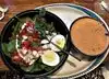 Comfortable spot to dine alone. Cold steamed peel 'em yourself shrimp delicious, served on bed of ice along with generous lemon slices and great cocktail sauce, with extra horse radish to add to taste. Service was prompt and courteous. Mixed greens salad much to large and could lose the iceberg lettuce in favor of just mixed greens, creamy vinaigrette dressing lost its sharp bite with the cream, but manageable. Local Atlanta Scofflaw Brewing Double Jeopardy a nice, strong, tasty beer.