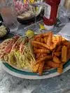 We eat a Dozen Raw Oysters, Lobster Bisquet and the Steamed Seafood Sampler with coleslaw. All dishes were really tasty. The Sampler is really a great selection. The service was excellent, great attention and friendly