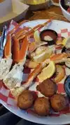 OMG this place was amazing! Our server, Sapphire, was a sweet and attentive server. We had some awesome shots that were made up for us. All the food was awesome. We had lobster bisque and lobster rolls and crab cakes and hush puppies...omg the hush puppies! We also had wine and shrimp cocktail and one of our friends had the oysters. The lobster bisque was filled with lobster chunks and shredded meat. The lobster rolls were generously stuffed. Everything was awesome. No complaints!