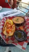 Excellent service and friendly waitress. Ate on the wrap around patio on the second floor - nice location. Tried the mussels, lobster rolls, lobster bisque and chocolate covered key lime pie. Mussels were good (order some extra bread for the sauce). Good size lobster roll with melted butter for dipping. (no mayo like in Maine; mostly lobster on a roll but nice size chunks. . Bisque was OK but not the best I've had, but very picky about lobster bisque. Chocolate covered key lime pie on a stick was interesting - not the typical style but worth a try. Overall a fun place to try. The food is not amazing, but is good. A nice place to hang out with a bit of coastal feel - would recommend trying it.