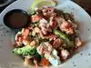 We love going to this restaurant! On this visit, we had the Shrimp and Scallop Nachos, which were excellent as usual. We also each had the special for the night, Lobster Salad. When the salad came out, it looked like a dream. The lobster on the top was tender and delicious. However, as I proceeded to eat my salad, I discovered it was absolutely loaded with pepper and vinegar. That was really bad! Why would you dump pepper on lobster? This wasn't a seasoning, it looked like when dishing up, my portion was the end of the bowl and it was just dumped onto my plate. The bottom of the salad was inedible. I won't order that again! How to ruin lobster in 2 easy steps.... Add way too much vinegar and then a fistful of pepper. Service was slow this night even though it was early and most tables were empty inside and out.