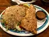 The catfish platter is enough for 2 people, it is a huge piece of fish and fried and seasoned very week. I highly recommend it. To be honest I have never had a bad meal here.