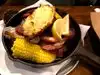 Wow! The food here wasn’t just good- it was fabulous! My husband and I shared a skillet dinner with shrimp, sausage, red potatoes, corn on the cob, oysters and cheese bread. Everything was cooked to perfection. My cousin had basically the same thing but with just jumbo shrimp. There were so many shrimp that he couldn’t even eat them all! I ordered a cup of lobster bisque and it was teaming with lots of delicious lobster! Our waiter, Trellis, was an absolute delight! You will not be disappointed in this restaurant! If I have time, I’m going back!!
