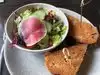 What a like find after attending mass at St James Cathedral! Service was wonderful…. Food was delicious! We sat on the patio….. lovely!