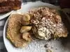 All of the staff were very friendly despite having a jam packed lunch hour. I saw the "The Smothered Meal that Shall Not Be Named" (due to TripAdvisors profanity restrictions) on the menu when I looked up the restaurant the night before and it did not disappoint. I've never heard of chicken fried steak in an omelet but they made a good call on that one. My boyfriend and I also had the banana bread french toast and it was really good. I wish I could describe these better but you'd really have to try them to understand; looking at a picture or review won't cut it. If all I did in Portland was go to the Stepping Stone, it would have been well worth the road trip from Los Angeles.