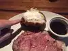 Late dinner of a party of 5 on a Monday night. No wait and the waitress has several recommendations for our party. Three of us ordered the coffee cured filet. Two medium rare one medium (which we had to convince him). All steaks were cooked to perfection. Tender and juicy and a large cut which comes with one side. I do not like sweets so my only complaint is that next time (which I will come back) I would not get the coffee cured but the regular filet. I hate to ruin a good steak with putting something on it to make it better but I do have to say I ate the whole coffee cured filet. All my coworkers who come to this area highly recommend the coffee cured filet too. I had the loaded baked potato and others ordered the sweet mashed potatoes and creamed spinach. All said sides were great. Another person ordered the meatloaf but I can’t comment on that. Only small negative comment was the waitress was a little slow to see to our table.