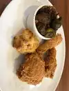 Went for a late brunch earlier today...it’s a bustling spot in an eclectic part of Dallas. The brunch & regular menu were so good we have already planned our return. Because it was our first time, we went for the recommendation which was of course, 2 or 3 pc Fried Chicken with a side. We both chose the Apple jicama slaw which was fresh, tasty and an absolute must. The chicken was stunning; simply Crispy and super juicy. The biscuits were fluffy and buttery goodness. My daughter had the chicken & waffles; she loved it but found it a bit aggressive on the maple syrup. It’s a must try but perhaps keep the syrup on the side. My son opted for the crispy chicken sandwich of which there was not a trace of; he demolished it and loved every bite....except the one I had! Diet starts now!!