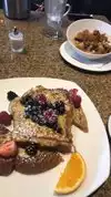 Had dinner, dessert, and breakfast here. The sourdough breakfast sandwich was sooo delicious. I also really liked their hot chocolate. Pancakes are huge! And served with real maple syrup. Dinner was delicious. I had the filet mignon with potatoes. Nice variety of bread served at dinner. I will definitely enjoy a couple more meals here next time. Oh, and the servers and hosts are all great too!