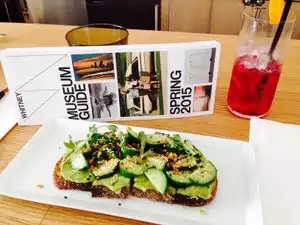 We decided to eat at this cafe, on the 8th floor of the Whitney Museum, We had three items served on toast- grilled cheese, smoked Arctic char and duck meatloaf bath mi. All were delicious and creatively presented. Sure it was pricey, but the lunch places in the neighborhood are also pricey. It's a good place to take a break from the museum. And the adjacent terrace offers great views. Service was good.