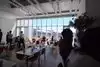 Bright airy room after wondering the galleries. Full assortments of drinks, hot and cold. Savory food & designer deserts.