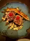 Was really wanting to enjoy this restaurant as its fare looked so interesting. Was disappointed in the food and beverage. Drinks were overly sweet with not much flavor. Although the goat cheese croquettes were fried perfectly and dipping sauce tasty, the interior had a somewhat glue/ paste consistency. The duck confit waffle was not very good. The egg was overcooked so no dripping yolk, the duck was overly salty and waffle did not hold up any crispiness. Husband’s tuna tartar was good but was actually more like a poke bowl vs. tartare. I like that better but he did not. Service was efficient but not attentive.